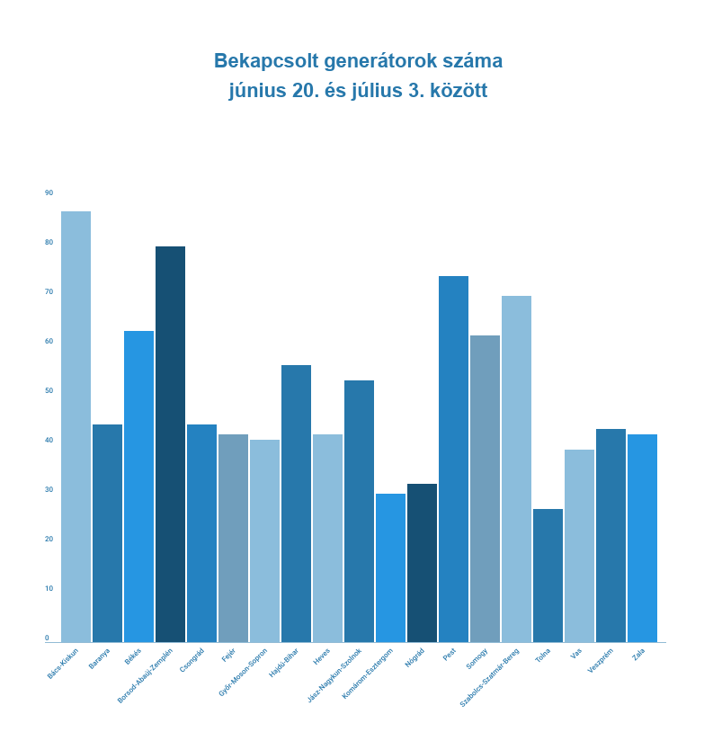 2. kép: A generátorok bekapcsolási időtartama megyei bontásban június 20. és július 3. között
