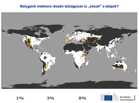 A talaj sótartalma kritikus tényező lehet a növények növekedése szempontjából. Amikor a talajban túl magas a nátrium-, mész-, gipsz- vagy szilícium-dioxid tartalom, a növények gyökerei nem tudják megfelelően felvenni a vizet és a tápanyagokat – így a mezőgazdasági hasznosítás lehetetlenné válik. Sajnos bolygónk felszínének további 3%-át érinti ez a probléma, ami azt jelenti, hogy ismét egy szelettel kisebb lett az az „alma”, amely élelmet biztosíthat számunkra.