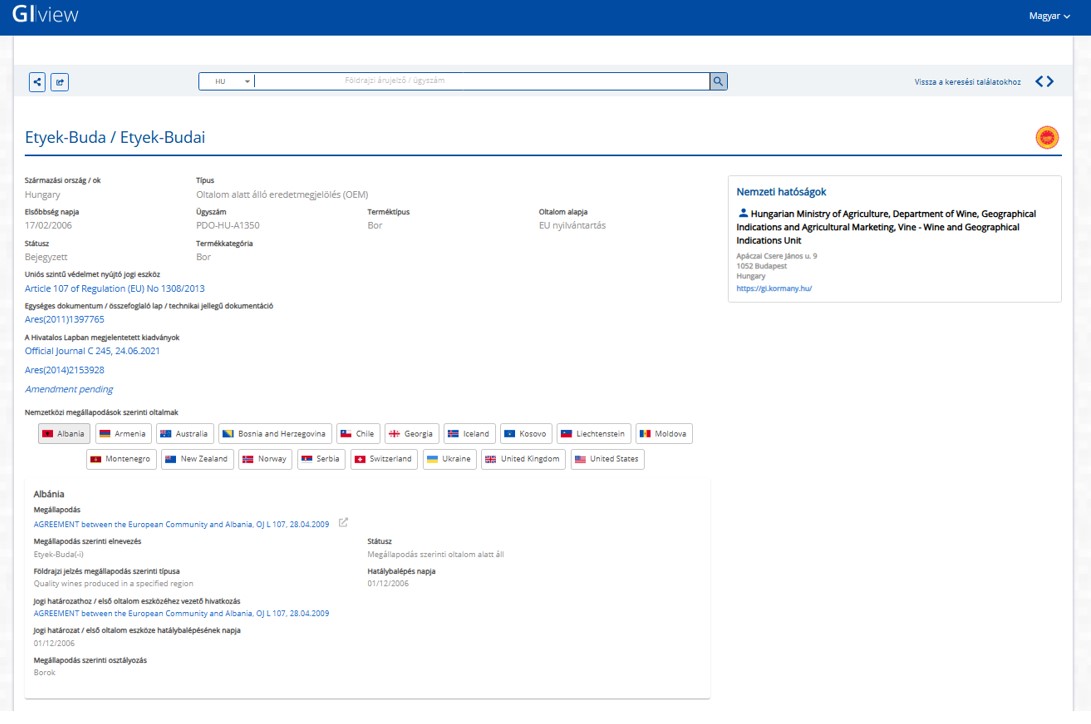 - a felhasználók megtalálhatják a kibővített adatokat és a földrajzi árujelzőkre vonatkozó dokumentumok linkjeit;