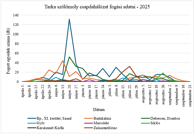 Tarka szőlőmoly csapdahálózat fogási adatai