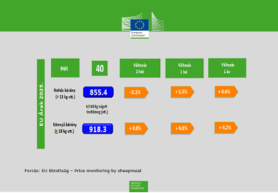 Az Európai Unióban 2025. negyvenedik hetében a nehéz bárányár minimális csökkenést, a könnyű bárányár pedig továbbra is emelkedést mutatott az előző heti árakhoz viszonyítva.