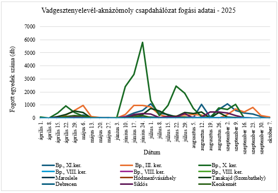 A legtöbb előrejelző ponton csökkent a fogott egyedek száma. Amerikai szőlőkabócát és őszi sereghernyót még nem figyeltek meg a csapdákban.
