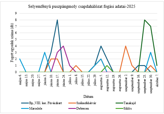 Siklóson, Kecskeméten és Zalaszentlőrincen nem detektáltak szilvamolyt. A legtöbb egyedet Maroslelén (14 db) figyelték meg.
