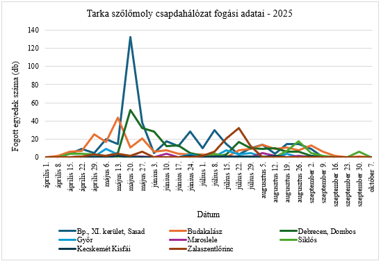 Tarka szőlőmoly csapdahálózat fogási adatai