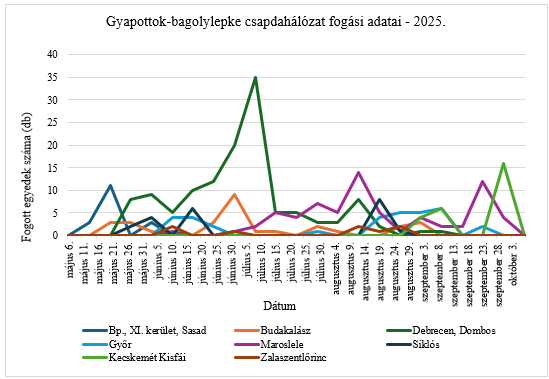 Gyapottok-bagolylepke csapdahálózat fogási adatai