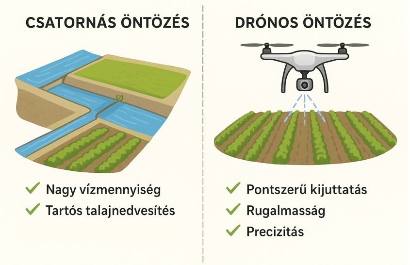 A csatornás öntözés és a drónos öntözés teljesen eltérő szemléletet képviselnek, de bizonyos módokon kiegészíthetik egymást.