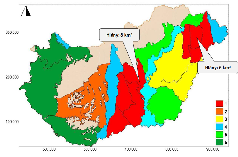 Hazánk vízgazdálkodása a klímaváltozás miatt egyre nagyobb kihívásokkal néz szembe (1. ábra). Az ország vízmérlege az utóbbi években negatív irányba tolódik el: a beérkező víz mennyisége 98 km3/év, míg a kiáramló víz mennyisége eléri az akár 105 km3/éves mennyiséget is. A beérkező csapadék évente 59 km3 vízmennyiséget foglal magába, melyből 51 km3 távozik is evapotranszspiráció formájában. A vízmérlegben a hazai eredetű vízkészlet mennyisége mindössze 7,1 km3/év, a felszíni lefolyás mennyisége évente 4,2 km3, a felszín alatti utánpótlódás pedig mindössze 2,9 km3/év. A bevezetéseket és a vízhasználatokat beleszámítva a talajvíz deficit éves mértéke 0,6 km3, mely 3-5 centiméteres süllyedést jelent.