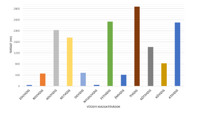 3. ábra: A felajánlott területek nagysága vízügyi igazgatóságok felbontásában (Láng István előadása, 2025)