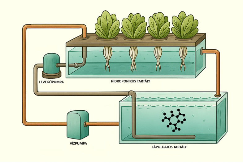 A hidropónia egyik legérdekesebb és legfenntarthatóbb változata az akvapónia, amely a növénytermesztést halneveléssel kapcsolja össze egy zárt, ökológiailag harmonikus rendszerben.
